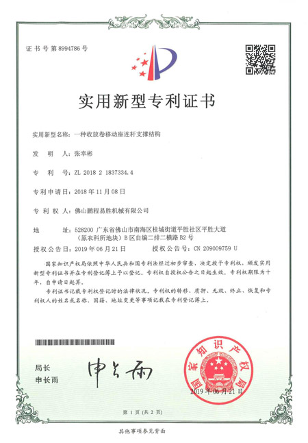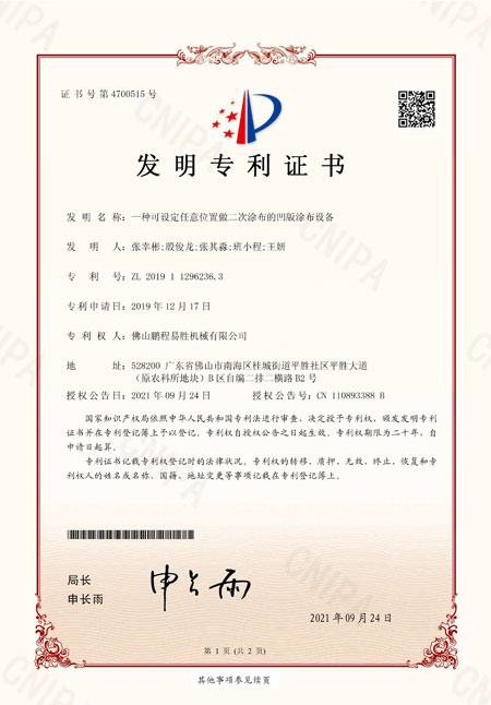 公司自成立以來,始終致力于新產(chǎn)品、新技術(shù)的研發(fā)、推廣。得到授權(quán)國家發(fā)明專利、實用新型專利、軟件著作權(quán)、注冊商標(biāo)等已超過100余項。公司自主研發(fā)生產(chǎn)的“鋰離子電池生產(chǎn)用涂覆凹版印刷設(shè)備”在2020年度評選為廣東省名優(yōu)高新技術(shù)產(chǎn)品稱號。同時公司先后獲得國家高新技術(shù)企業(yè)、桂城品牌企業(yè)、佛山市“專精特新”企業(yè)、規(guī)模以上企業(yè)、重合同守信用企業(yè)、佛山市領(lǐng)軍企業(yè)、佛山市最具發(fā)展?jié)摿ζ髽I(yè)、街道安全生產(chǎn)企業(yè)、安全生產(chǎn)標(biāo)準(zhǔn)化企業(yè)等榮譽稱號,2019年被評為廣東省最具發(fā)展?jié)摿η?qiáng)企業(yè)。